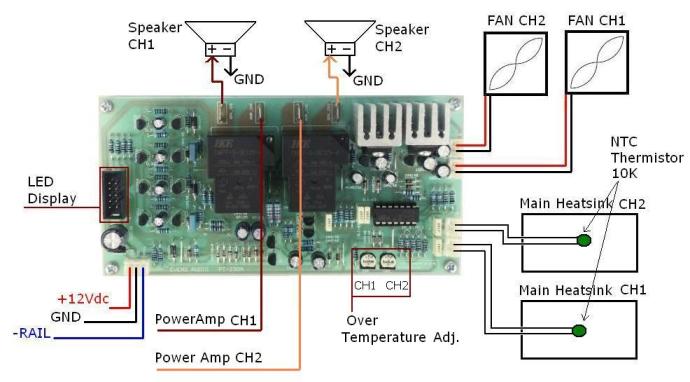 หลายครั้งที่การประกอบเพาเวอร์แอมป์ต้องติดปัญหากับระบบป้องกันและระบบแสดงผลที่ไม่ได้ดั่งใจ หรืออาจต้องใช้วงจรหลายๆส่วนนำมาประกอบกันเพื่อให้การทำงานเป็นไปตามที่ต้องการ ทำให้เกิดความยุ่งยากและสูญเสียพื้นที่จัดวางโดยไม่จำเป็น ระบบป้องกันและระบบแสดงผลการทำงานของเพาเวอร์แอมป์ทั่วๆไปอาจตอบโจทย์การใช้งานของผู้ประกอบเพาเวอร์แอมป์ไม่ได้ทั้งหมด เพราะหากจะประกอบเพาเวอร์แอมป์ให้ได้ระดับมาตรฐานนั้นจำเป็นจะต้องมีระบบป้องกันลำโพงระบบป้องกันอุณหภูมิเกินระบบควบคุมความเร็วพัดลมและฟังก์ชั่นการแสดงผลการทำงานของเครื่องที่ต้องการทั้งความชัดเจนถูกต้องแม่นยำ เราจึงพัฒนาระบบป้องกันที่รวมวงจรป้องกันลำโพงระบบป้องกันอุณหภูมิเกินระบบควบคุมความเร็วพัดลมและระบบแสดงผลการทำงานของเครื่องมาไว้บน PCB แผ่นเดียวและใช้งานง่าย