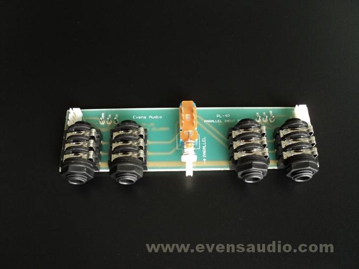 PL-4P คือแผ่น PCB อินพุต Stereo สำหรับแท่นเพาเวอร์แอมป์ประกอบมาตรฐาน มีสวิตซ์ Parallel Mono แจ๊กโฟนแบบบาลานซ์อินพุต 4 ตัว มีคอนเน็กเตอร์สำหรับต่อสัญญาณไปยังแจ๊ก XLR บอร์ดมีสกรีนบอกตำแหน่งขั้วของสัญญาณทั้งด้านบนและด้านล่างของ PCB เหมาะสำหรับใช้กับ Q-1850 และเพาเวอร์แอมป์ที่มีบาลานซ์อินพุตในตัว