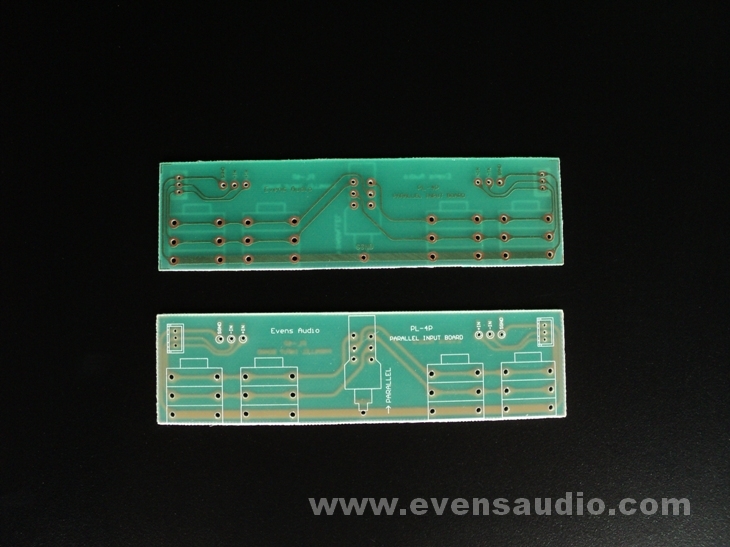 PCB อินพุต Stereo สำหรับแท่นเพาเวอร์แอมป์ประกอบมาตรฐาน มีสวิตซ์ Parallel Mono แจ๊กโฟนแบบบาลานซ์อินพุต 4 ตัว มีคอนเน็กเตอร์สำหรับต่อสัญญาณไปยังแจ๊ก XLR บอร์ดมีสกรีนบอกตำแหน่งขั้วของสัญญาณทั้งด้านบนและด้านล่างของ PCB เหมาะสำหรับใช้กับ Q-1850 และเพาเวอร์แอมป์ที่มีบาลานซ์อินพุตในตัว