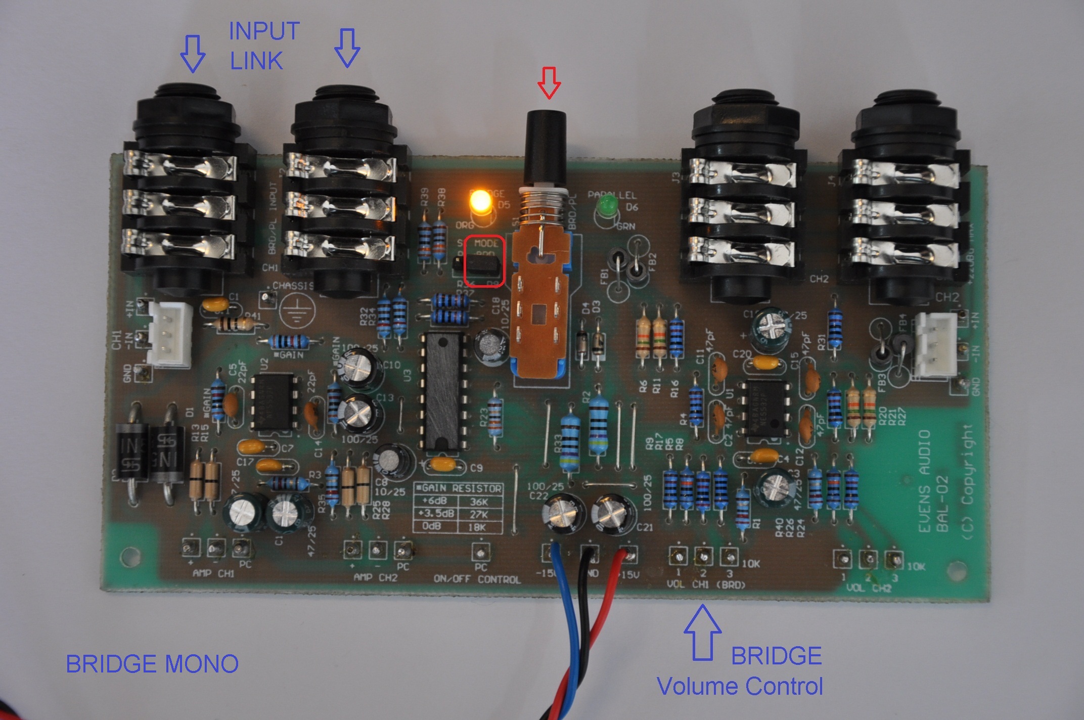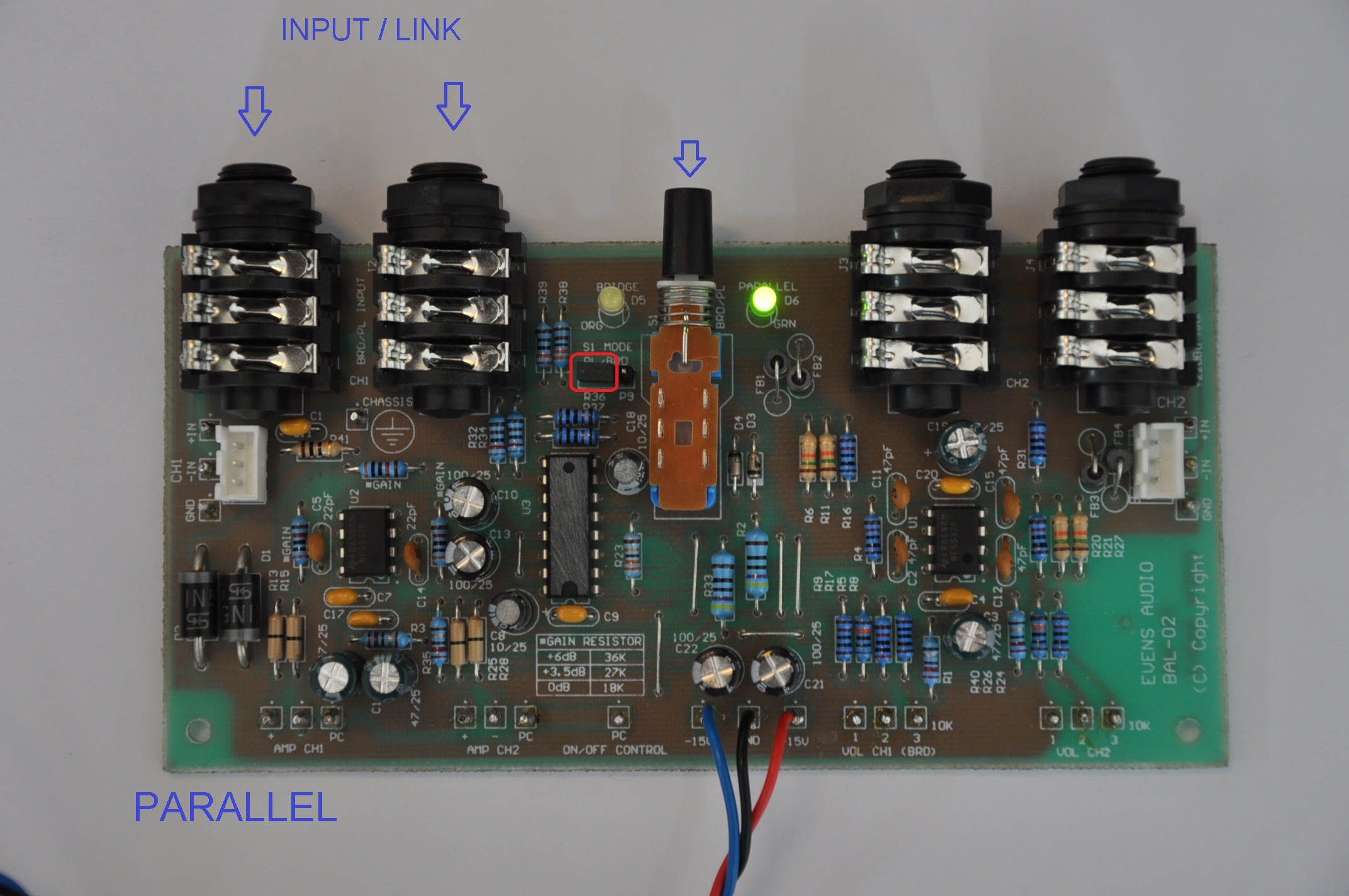 เคยไหม เมื่อซื้อวงจรบาลานซ์อินพุตไปแล้ว บางทีก็อยากได้สวิตซ์หลังแท่นแบบ ฺBridge Mono บางทีนึกเปลี่ยนใจอยากได้ โหมด Parallel เมื่อสวิตซ์หลังแท่นมีตัวเดียว จะดีไหมถ้าเราสามารถเลือกได้ว่าสวิตซ์หลังแท่น จะเป็นอะไรก็ได้ ทั้ง Bridge Mono และ Parallel เพียงเซ็ตค่าที่ Jumper ง่ายๆ ไม่ต้องซื้อบอร์ดบาลานซ์ตัวใหม่ ไม่ต้องเสียเวลารื้อเดินสายใหม่