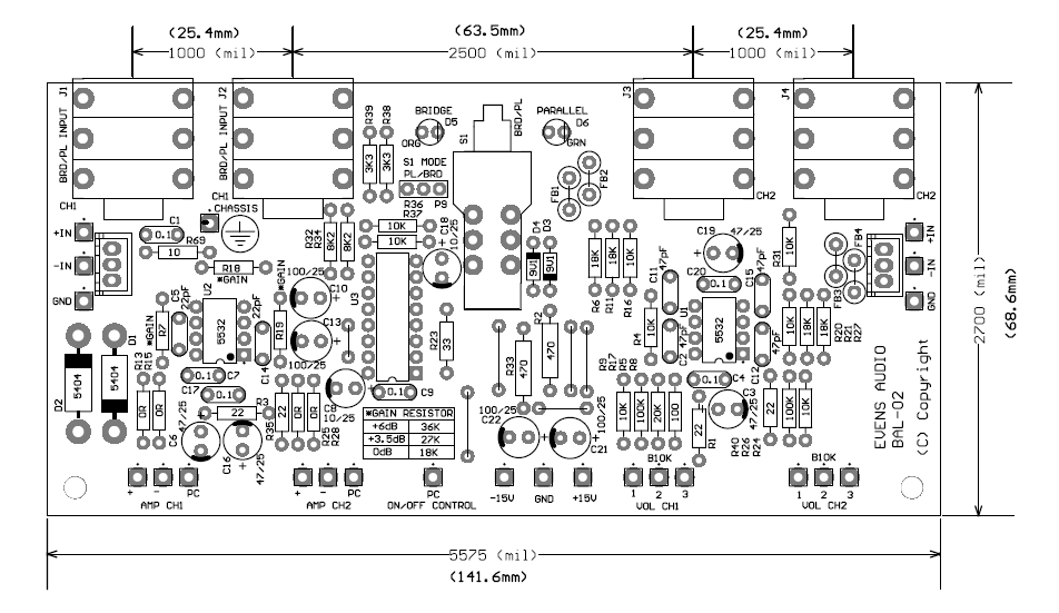 -อัตราขยาย 0dB/3.5dB/6dB สามารถปรับค่าด้วยตัวต้านทานบนบอร์ด 3 จุด