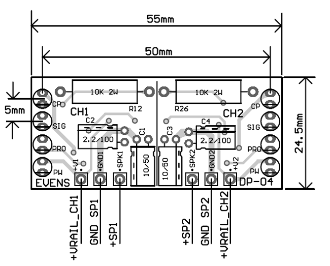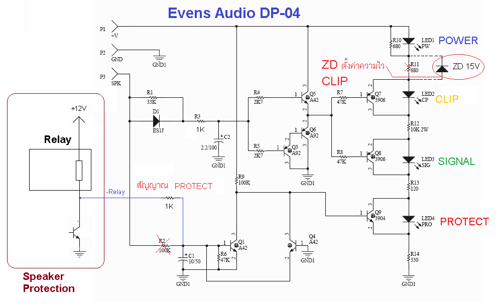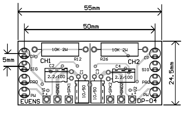 วงจรแสดงผลที่มีอยู่ทั่วไปในตลาดส่วนใหญ่ไม่สามารถแสดงผลการ Clip ของสัญญาณเสียงที่ออกไปลำโพงได้อย่างแม่นยำ เพราะ การ Clip ของสัญญาณเสียง แปรไปตามแหล่งจ่ายไฟที่อาจมีตกและเปลี่ยนแปลงได้ แต่ DP-04 ตัวนี้ Evens Audio ออกแบบให้วงจร ใช้ไฟเลี้ยงเพาเวอร์แอมป์มาเทียบกับสัญญาณเสียงที่ขั้วลำโพง ทำให้การแสดงผล Clip ถูกต้องแม่นยำทุกช่วงเวลา เอาไปใช้ได้เพาเวอร์แอมป์ทุกระดับแรงดันแหล่งจ่ายไฟ สะดวกไม่ต้องหาแหล่งจ่ายไฟเพิ่ม และที่สำคัญต่อสายเข้าบอร์ดเพียงแชนแนลละ 3 เส้น แยก +V และ GND แต่ละแชนแนลออกจากกัน เพราะป้องกันกราวด์ลูป และเพาเวอร์แอมป์ที่ใช้แหล่งจ่ายไฟแยกซ้ายขวาอิสระจะได้เอาไปใช้ได้ทันที