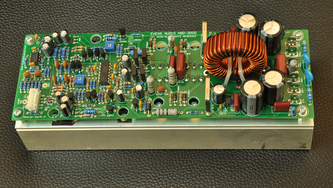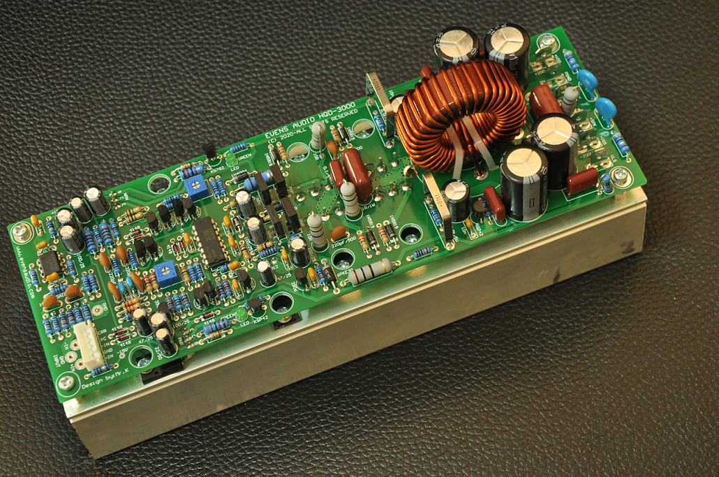 HQD-3000 เพาเวอร์แอมป์ที่ พัฒนาแนวคิดจาก UcD ซึ่งเป็นเพาเวอร์แอมป์ Class D ที่ให้น้ำเสียงเป็นธรรมชาติมาก เป็นที่ยอมรับของเหล่านัก DIY ซึ่งเสียงตอบรับที่ดีมาก จาก DLC-750 จน Evens Audio ต้องนำเทคนิค UcD มาออกแบบวงจรเพื่อให้ได้กำลังเอาต์พุตสูงๆ รองรับแรงดันไฟเลี้ยงได้สูงสุด +/-200Vdc PCB ที่ออกแบบจาก Evens Audio เป็น PCB คุณภาพสูง แบบ 2 เลเยอร์ เพลททรูโฮลด์ ทองแดงมีความหนา 2 ออนซ์ คำนึงถึงการจัดการระบบกราวด์อย่างเป็นสัดส่วน จึงตัดปัญหากวนใจต่างๆที่เคยมีในเพาเวอร์แอมป์ Class D ทั่วไปโดยสิ้นเชิง HQD-3000 ถูกออกแบบให้มีวงจร Mute หรือ PC (Power Control ) สำหรับเชื่อมกับสวิตชิ่งเพาเวอร์ซัพพลาย PSX-Series ทำให้การเปิด-ปิดเครื่องได้อย่างนิ่มนวลไร้เสียงรบกวน มีระบบป้องกัน Over Load ป้องกันการต่อลำโพงมากเกินไปหรือมีการลัดวงจร