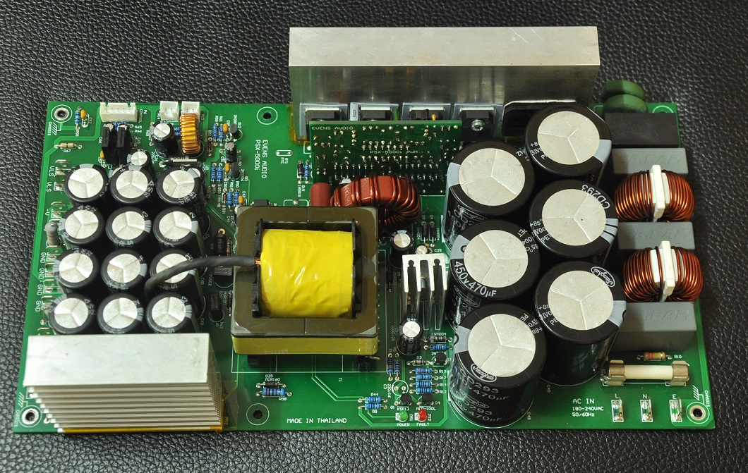 PSX-5000i เป็นสวิตชิ่งเพาเวอร์ซัพพลายกำลังระดับ 5000 วัตต์ เหมาะสำหรับใช้ในเพาเวอร์แอมป์กำลังระดับ 2500+2500W โดยประมาณ มีความพิเศษโดยออกแบบวงจรเป็น Full Bridge LLC Resonant ทำให้สามารถทำงานที่ความถี่ได้สูงกว่าระบบทั่วไป ด้วยเทคนิคการทำ Soft Switching ทำให้ลดความร้อนของ MOSFET ลดขนาดของแกนหม้อแปลงให้เล็กลง และทำให้สัญญาณรบกวนต่ำลง แต่ยังคงให้กำลังเอาต์พุตได้สูง ถือเป็นเทคโนโลยีสวิตชิ่งเพาเวอร์ซัพพลายที่นิยมใช้ในเพาเวอร์แอมป์ PA ชั้นนำของโลก เหมาะสำหรับใช้งานร่วมกับ Class D Amplifier รุ่น HQD-1250 และ HQD-3000