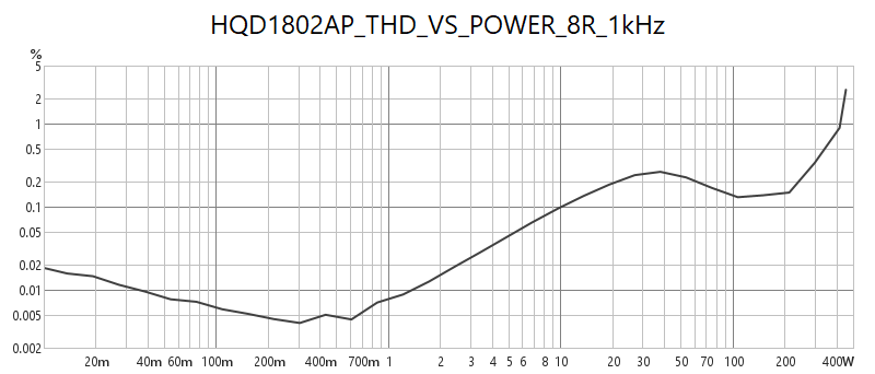 HQD-1802AP เป็นโมดูลภาคขยายเสียง Class D ที่รวมแหล่งจ่ายไฟสวิตชิ่ง Full-Bridge ไว้ในชุดเดียวกัน เป็นการต่อยอดความสำเร็จของ HQD-500 V3 ช่วยลดความยุ่งยากในการประกอบและเดินสายไฟ นอกจากนั้น ยังได้กำลังเอาต์พุตสูงถึง 700+700Wrms ที่ 4 โอห์ม 380+380Wrms ที่ 8 โอห์ม ในโหมด Stereo และ 1,400Wrms ที่ 8 โอห์ม ในโหมดบริดจ์โมโน และยังสามารถสร้าง Dynamic Power รวมสูงสุดได้ถึง 1,800W