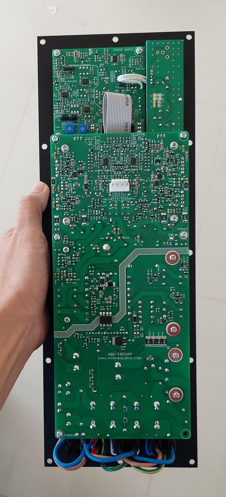 HQD-1802AP 2-Way ขนาดเล็กเพียง 142*395mm และต้องการห้อง ขนาด 118*371mm ลึก 70mm สำหรับติดตั้งในตู้ลำโพง ในส่วนปรีแอมป์และ Crossover ภาคหน้าเป็น Analog ทั้งหมด จึงไม่มี Time Latency เหมาะอย่างยิ่งที่จะนำไปอยู่ในลำโพงระบบ 2 ทาง ที่ให้กำลังขับสูง สร้างความดังได้สูง และให้คุณภาพเสียงที่ยอดเยี่ยม เช่นในงาน Stage monitor , PA Point Source , Line Array ,ฯลฯ