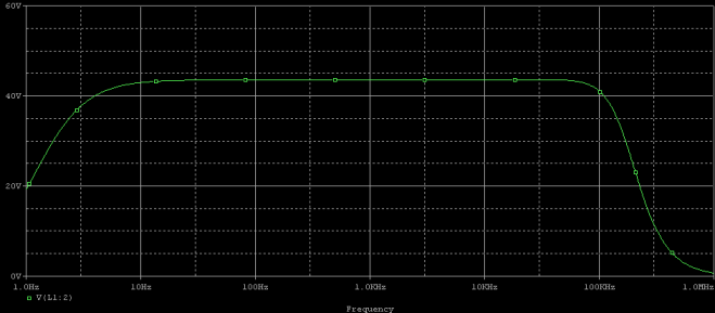 รูปที่3 ผลการซิมมูเลชั่นการตอบสนองความถี่วงจรเพาเวอร์แอมป์ RX-Series