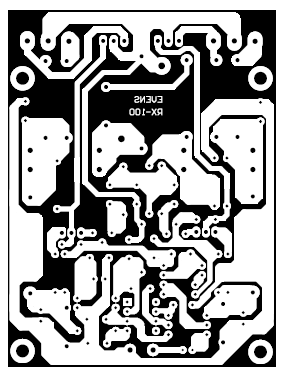 การสร้างสำหรับผู้ที่มีประสบการณ์การต่อโครงงานเครื่องเสียงมาบ้างแล้วคงไม่มีปัญหามากนักก่อนอื่นต้องลงมือทำ PCB อาจจะทำองหรือจ้างร้านทำก็ตามแต่สะดวก แต่มีวิธีที่ผมอยากนำเสนอคือวิธีการทำ PCB โดยใช้ Dry Film ซึ่งค่อนข้างสะดวกและลาย PCB ที่ออกมามีความคมชัด ดังรูปที่ 6 เป็นลายPCBด้านล่างแบบ Negative สำหรับใช้ทำ PCB แบบ Dry Film