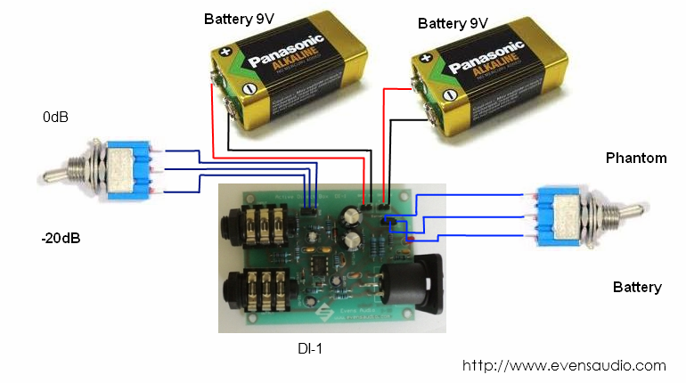 จากปัญหาดังกล่าว Evens Audio จึงได้ออกแบบชุดคิทวงจร Active Direct Box สำหรับใช้งานแปลงสัญญาณแบบ Unbalance เป็นแบบ Balance สำหรับอุปกรณ์ดนตรีเช่น กีตาร์เบส คีย์บอร์ด ซึ่งมีชื่อว่า DI-1 มีคุณสมบัติเช่นเดียวกันกับ Active Direct Box มาตรฐานทั่วไป สามารถใช้งานง่าย ให้ท่านสามารถนำไปสร้างใช้งานเองได้ในราคาที่ประหยัด
