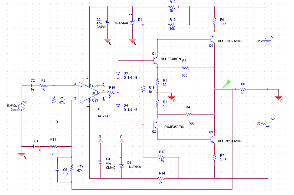วงจรเพาเวอร์แอมป์ที่มีวงจรขยายสัญญาณภาคแรกเป็นไอซีออป-แอมป์ 741 นั้นถือเป็นวงจรเก่าแก่ดั้งเดิมเหมาะที่จะเป็นพื้นฐานการศึกษาวงจรเพาเวอร์แอมป์อย่างดีเชื่อว่าบรรดาช่างอิเล็กทรอนิกส์มือใหม่หรือมือเก่าล้วนเคยผ่านไม้ผ่านมือมาบ้างแล้วสำหรับวงจรเพาเวอร์แอมป์ 741 ในบทความนี้จะนำเสนอหลักการทำงานของวงจรเพาเวอร์แอมป์ 741 แนวทางการปรับปรุง-แก้ไขเพื่อให้วงจรมีคุณสมบัติด้านต่างๆที่ดีขึ้นโดยผมจะหลีกเลี่ยงการคำนวณทางคณิตศาสตร์ที่ซับซ้อนเพราะผมเองก็รู้สึกว่าการอ่านบทความวิชาการที่มีสมการทางคณิตศาสตร์เยอะๆพาลจะทำให้ไม่สนุกผมจะอธิบายแบบง่ายๆตามความเข้าใจพื้นฐานและใช้การซิมมูเลชั่นจากโปรแกรม OrCAD อ้างอิงผลการทำงานของวงจรอีกครั้ง
