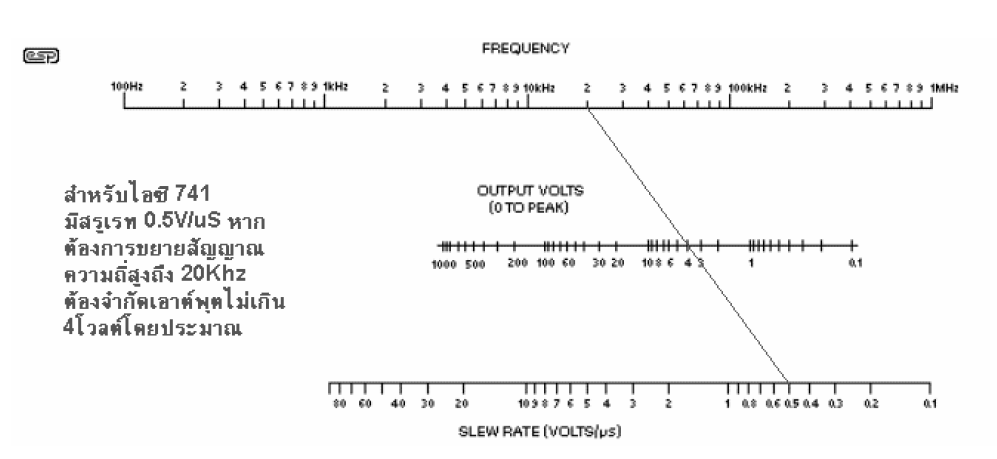 รูปที่2 Nomo graph แสดงค่า slew rate ความถี่และแรงดันเอาต์พุต