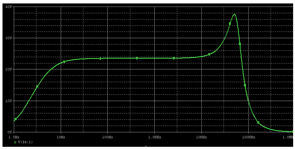รูปที่ 10 ผลการตอบสนองความถี่ของวงจรเมื่อใช้ไอซี HA17741